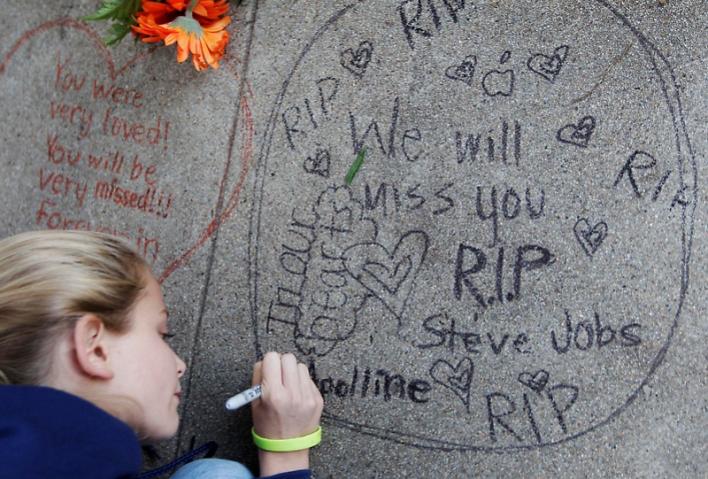 Стив Джобс умер в возрасте 56 лет после продолжительной борьбы с раком поджелудочной железы.  Компания Apple объявила о смерти своего основателя без каких-либо дополнительных комментариев. Посетители магазинов Apple во всем мире 5 октября видели черно-белую фотографию Стива Джобса с двумя датами (1955-2011). Люди собрались у магазинов, чтобы отдать дань уважения умершему изобретателю.