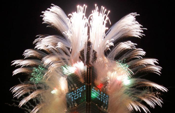 Запуск фейерверков с самого высокого небоскреба в Тайпее, Тайвань, 1 января 2012 года. (Reuters/Shengfa Lin)