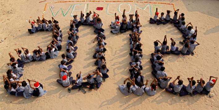 Ученики празднуют Новый год в школе, Ахмедабад, Индия, 31 декабря 2011 года. (Reuters/Amit Dave)