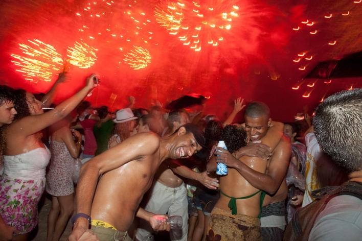 Пляжная вечеринка в честь Нового Года в Рио-де-Жанейро, Бразилия. Одно из самых масштабных новогодних гуляний в мире завершилось в 3:00 1 января 2012 года. (Konrad Fiedler/Getty Images)
