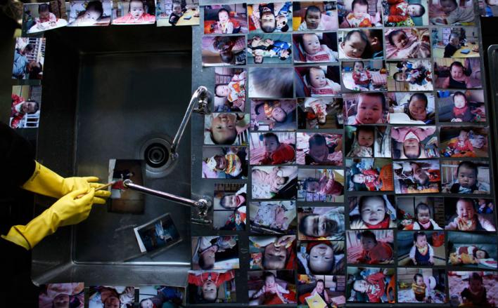 Добровольцы очищают семейные фотографии, пострадавшие при землетрясении и цунами 11 марта, Офунато, префектура Иватэ, 12 апреля 2011 года. (Reuters/Toru Hanai)