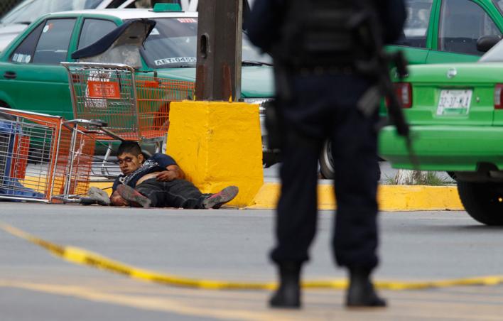 Полицейский на месте преступления в Монтеррей, Мексика, 30 мая 2011 года. Вооруженные преступники убили 5 человек: четверых таксистов и одну женщину.Неизвестные расстреляли их, проезжая мимо на автомобиле. За последние пять лет, по подсчетам правительства, в Мексике жертвами бандитских войн пали около 46 000 человек. (Reuters/Tomas Bravo)