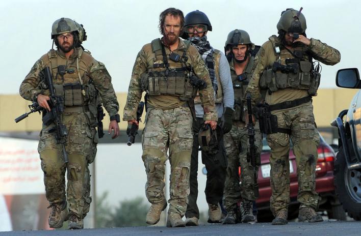 Бойцы спецподразделения покидают отель "Интерконтинентал" после штурма, Кабул, 29 июня 2011 года. Террористы-смертники и стрелки Талибана атаковали отель и засели в нем. После пятичасового боя при поддержке вертолета силы НАТО смогли уничтожить нападавших, которые к тому времени успели убить 10 человек. (Pedro Ugarte/AFP/Getty Images)