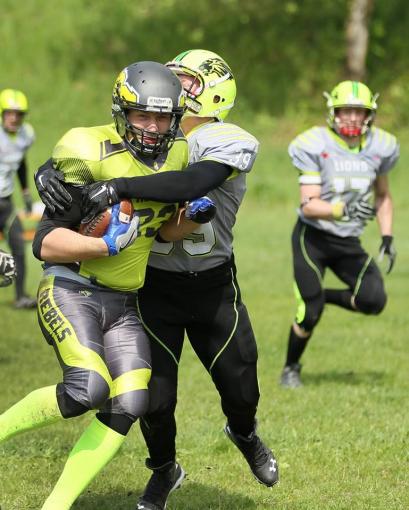 У Львові стартував новий сезон американського футболу. На стадіоні ЛНУ ім. І.Франка 14 травня місцевий «LIONS» («Леви») приймав столичний «REBELS» («Повстанці»). Кияни – «чорні конячки» дивізіону взагалі проводили лише свій третій офіційний матч. Проте, про силу команди свідчать декілька перемог у товариських матчах в тому числі й проти закордонних клубів. Кияни зі старту буквально шокували львів’ян: перша ж атака завершилася взяттям залікового поля «Левів». Гості вдало виконали очкову реалізацію після тачдауну та вже на першій хвилині гри вели 7:0.