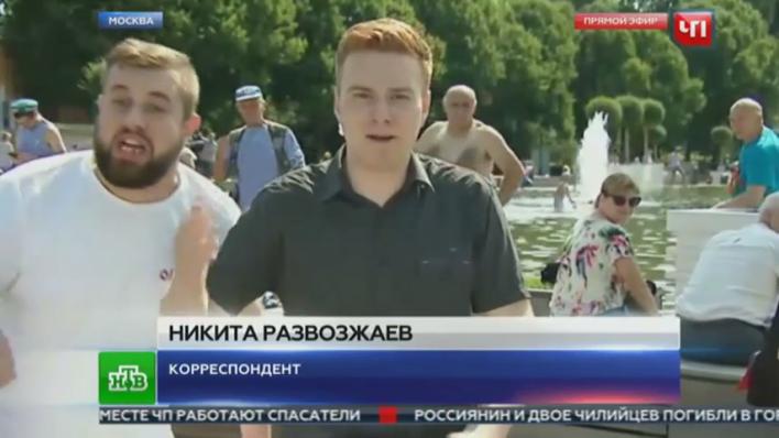 Соцсети второй день обсуждают происшествие случившиеся вчера, когда на корреспондента программы «Чрезвычайное происшествие» на канале НТВ напали во время прямого включения из Центрального парка культуры и отдыха имени Горького в Москве. Никита Развозжаев рассказывал, как в парке отмечают День ВДВ.