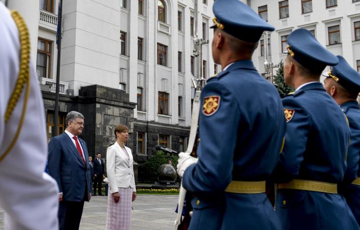 На площі перед будинком Адміністрації Президента України відбулася офіційна церемонія зустрічі Президента України Петра Порошенка з Президентом Естонської Республіки пані Керсті Кальюлайд, яка перебуває в Україні з офіційним візитом.