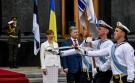 Перед центральним входом до будинку АПУ та Будинку Городецького встановлено державні прапори України та Естонської Республіки та вишикувані воїни роти Почесної варти. Військовий оркестр виконав державні гімни Естонської Республіки та України.