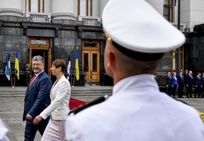 На площі перед будинком Адміністрації Президента України відбулася офіційна церемонія зустрічі Президента України Петра Порошенка з Президентом Естонської Республіки пані Керсті Кальюлайд, яка перебуває в Україні з офіційним візитом.