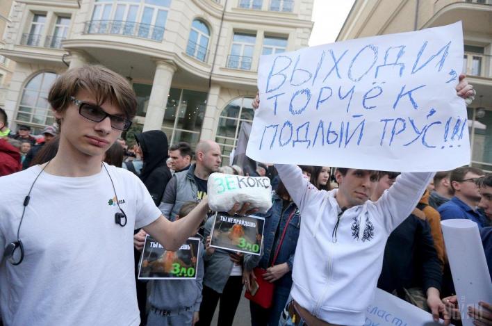 Однако практически одновременно с первым митингом на Новоселицкую улицу также пришли и противники Владимира Зеленского. В этом случае организатором, по крайней мере, публично, являлся блогер Мирослав Олешко. Вместе с ним к офису кандидата в президенты и известному шоумену пришли «активисты, ветераны АТО», чтобы потребовать от него ответов на вопросы. «Сейчас он прячется за титушками. Как он будет прятаться, если выиграет выборы? За «Беркутом», как Янукович?» — в громкоговоритель кричал Олешко.