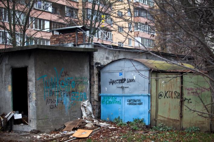 Фотограф Дмитрий Дятлов: «У каждого города есть своя парадная сторона – фасад. Подремонтированный, подчищенный, подкрашенный. А есть оборотная сторона – так сказать, задние дворы, куда обычно не попадают туристы и куда уж точно не возят правительственные делегации. Но, если вдуматься, жизнь большинства жителей города протекает именно в этих «задних дворах», лишь с периодическими выездами в парадно-центральную часть. Мне захотелось побродить с камерой по таким «непарадным» районам Киева и взглянуть через объектив на то, мимо чего мы обычно проходим, не замечая. Дворы и пустыри, советские гаражи и старые детские площадки, заброшенные кладбища среди новостроек, трамвайные пути и места обитания бомжей под мостами. Есть в этих задворках Киева свое очарование. По крайней мере, мне так кажется».