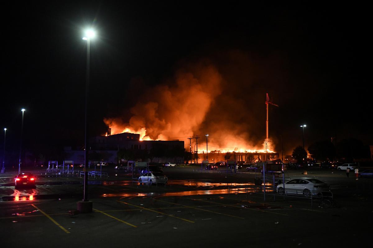 Демонстранты начали собираться во второй половине дня в среду возле Третьего отделения полиции. Но вечером полицейские попытались разогнать толпу, используя шумовые гранаты и слезоточивый газ. Ночью еще больше людей заполнили улицы, а вскоре после того вспыхнули пожары. На фото с Миннеаполиса видно, как горит по крайней мере один офис, магазин автомобильных запчастей, а люди выносят товары из другого магазина неподалеку. Местная газета The Minneapolis Star Tribune сообщает, что магазин сети Target and Cub Foods на углу улицы Ист-Лейк и Хиавата авеню был разграблен, так же как и алкогольная лавка.